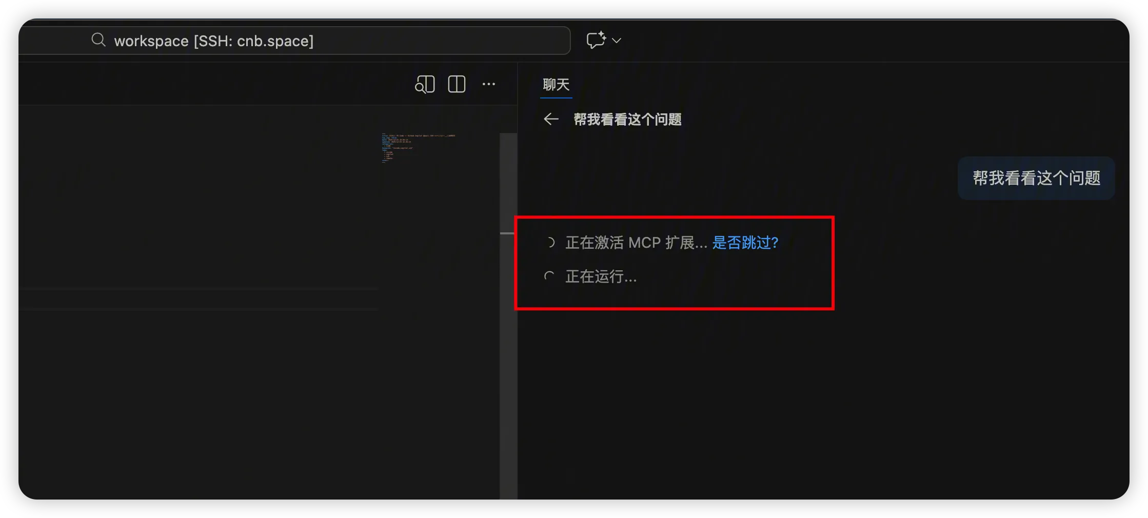 平时我们使用 VSCode 进行远程开发时,但远程开发过程中,GitHub 的 Copilot 似乎是失效的,它无法激活 MCP 扩展,会一直卡在运行中,直到超时。